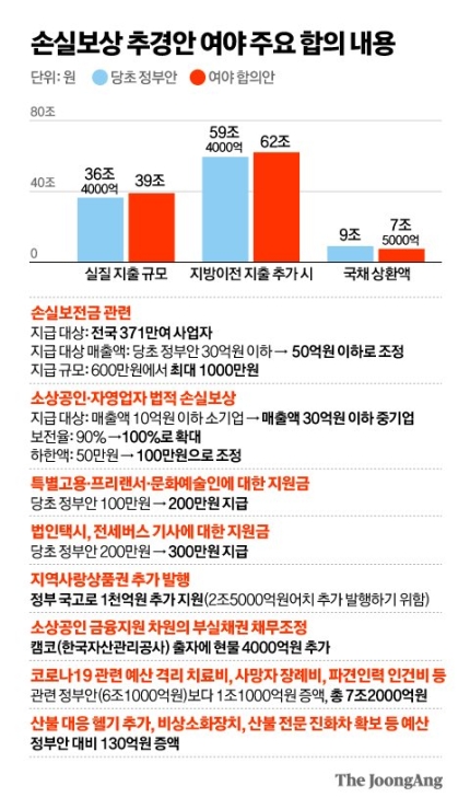 그리고 다음은 가장 중요한 지급 일정을 말씀드릴 텐데요. 소상공인 손실 보증금 최소 600만 원 지원은최대한 빠르게 지급 약속을 해 주기로 여당 원내대표가 약속을 했는데요.