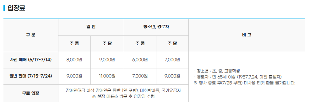 입장료는 행사기간동안은 주중 9천원, 주말 1만 1천원이지만, 미리 사전구매를 하면 조금더 저렴하게 구매할수 있습니다.